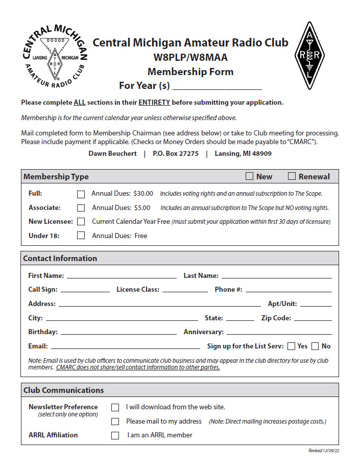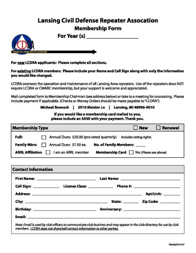 Simply download the appropriate form, fill out the form, and either bring it to a future CMARC or LCDRA meeting, or mail it in. It's that easy.