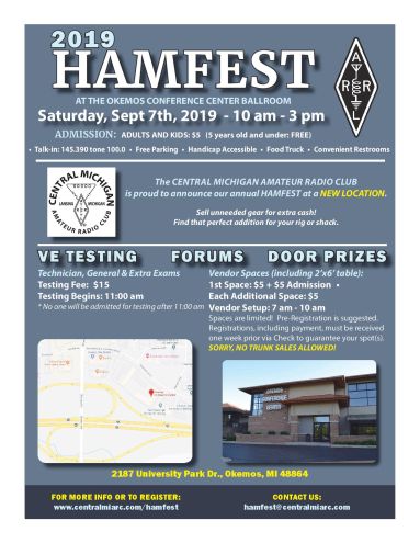 To register, or for any HAMFEST questions, please send an email to: hamfest@centralmiarc.com.