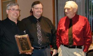 Richard McGuire (KI8C) is congratulated by the 2008 Ziegenbein