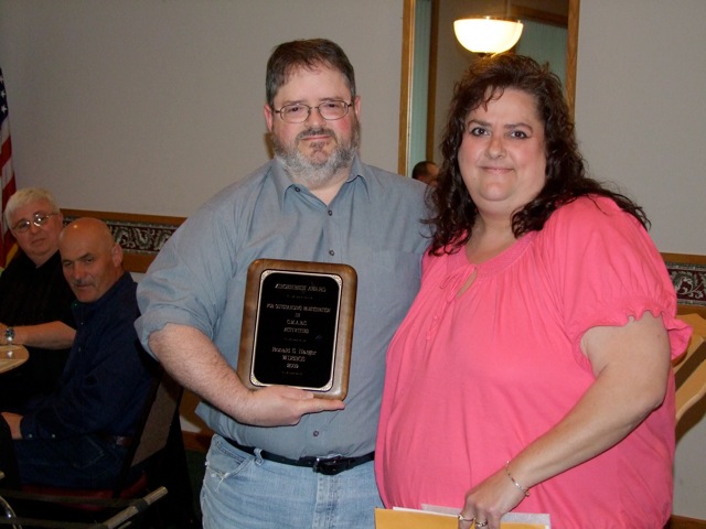 “Introducing the winner of the Ziegenbein Award for the year 2012.... Mr. John Hosford, KC8QZB!” John is a very humble and unassuming person, who doesn’t do anything for recognition or praise, but just because he wants to help! He truly has that “Ralph Ziegenbein” attitude, because after all, it’s not just WHAT a person does but WHY they do it that counts, right? John never complains or utters an unkind word; he is kind, patient and more than willing to help!